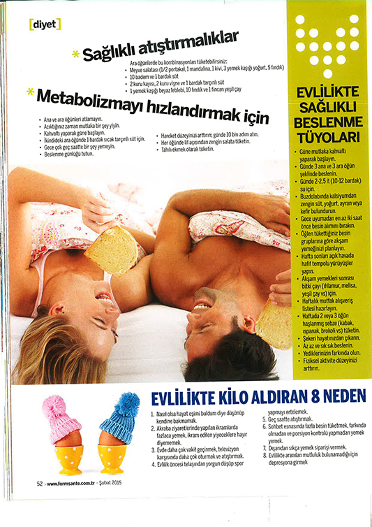 FORMSANTE Dergisinin Şubat Sayısında yazdığım; Evlilik sonrasında uygulayabileceğiniz ''7 Günlük Partner Diyetimi'' okumayı kaçırmayın.. |