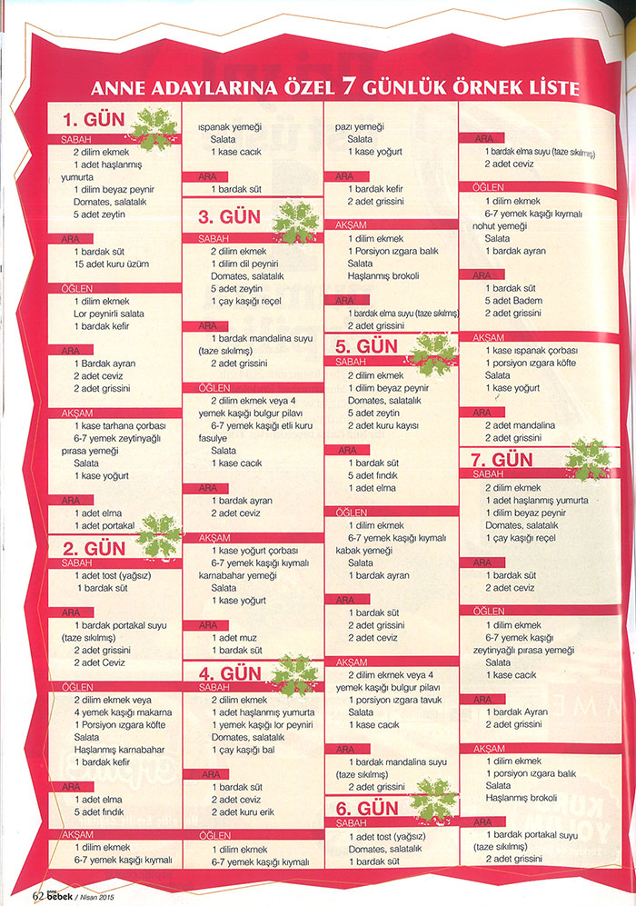Anne Bebek Dergisinin 2015 Nisan sayısında yazdığım "Anne adayları için örnek haftalık menü" başlıklı yazımı kaçırmayın... |