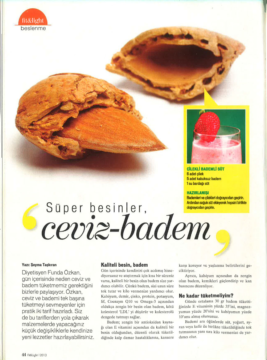 FORMSANTE Dergisinin 2015 Ekim Sayısında Yazdığım "15 Günde Yağ Yakımını Hızlandırmanın Yolları, Hangi Besinlerde Yararlı Yağlar Var?, Kas Kütlesini Arttırmak için iyi gelecek Besinler Neler?, Kas Kütlesini Kaybetmemek için Neler Yapılmalı? Greyfurtlu Lor Peynirli Salata, Avokadolu Tavuk Salatası, Baharatlı Kabak Çorbası Tarifleri, ve 7 Günlük Dyt.Funda ÖZKAN'dan Yağ Yaktıran Diyet Listesini" okuyabilirsiniz... |