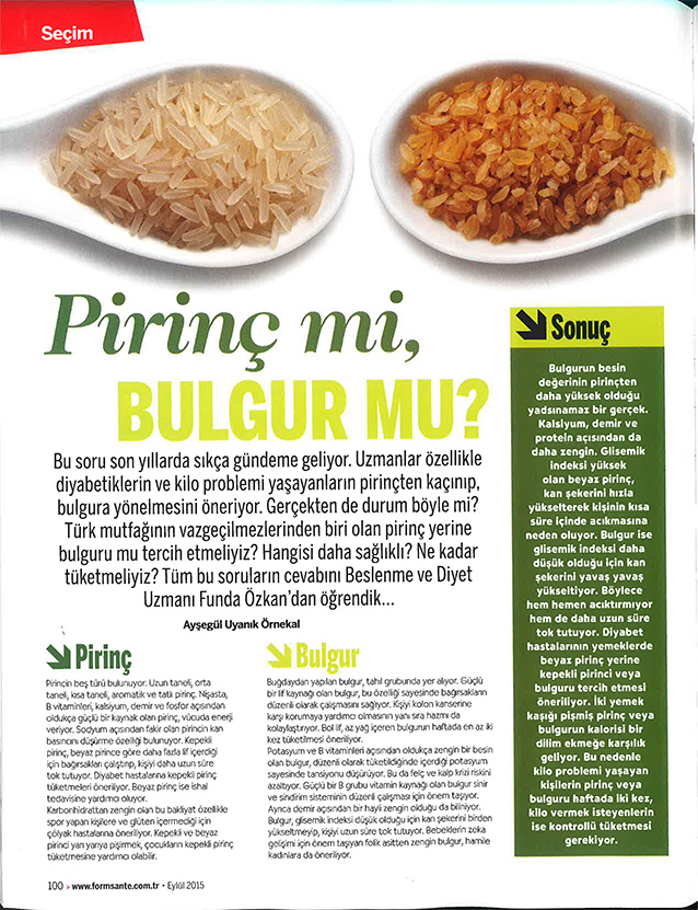 FORMSANTE Dergisinin 2015 Eylül Sayısında yazdığım "Pirinç mi? Bulgur mu?" başlıklı yazımı okuyabilirsiniz... |