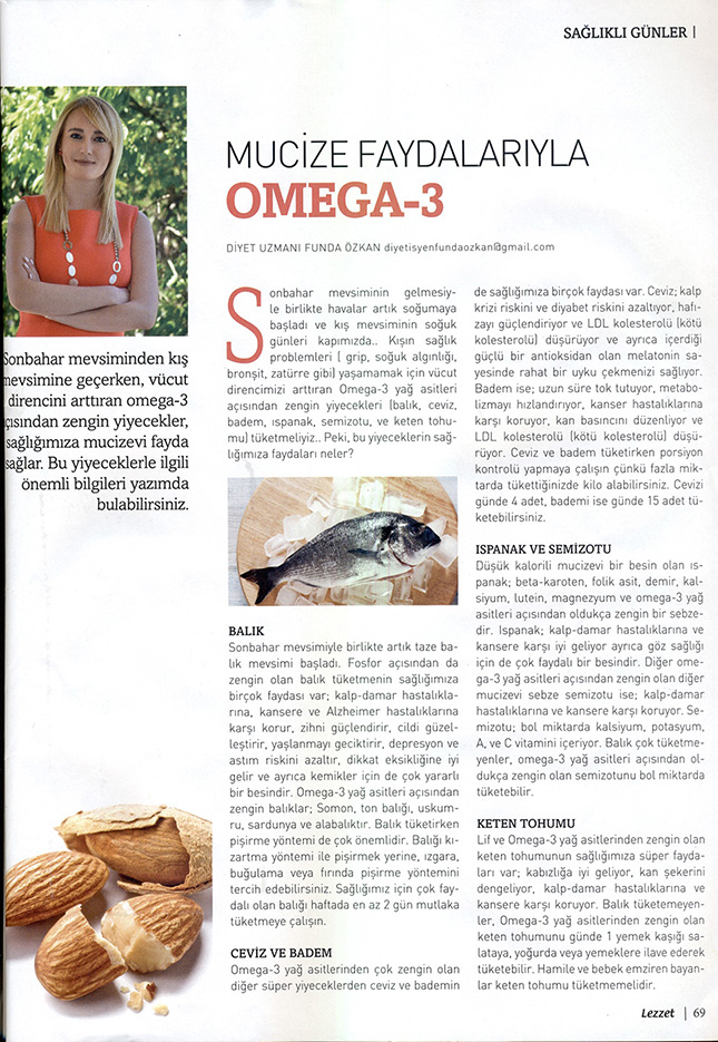 LEZZET Dergisinin 2015 Ekim Sayısında yazdığım "Mucize Faydalarıyla Omega-3" başlıklı yazımı okuyabilirsiniz... |