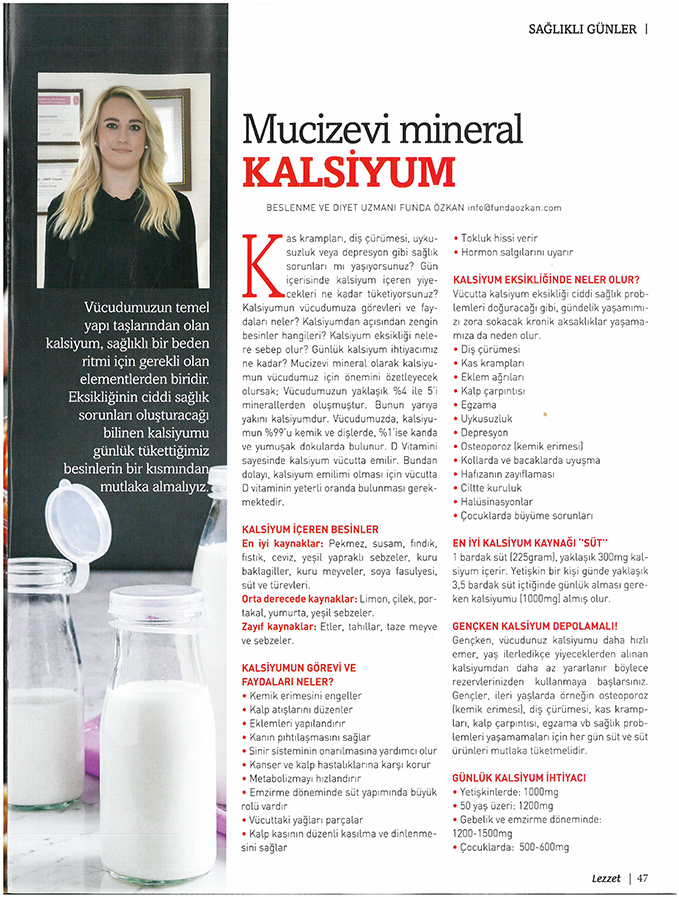 LEZZET Dergisinin 2016 Şubat Sayısında yazdığım "Mucizevi Mineral Kalsiyum" başlıklı yazımı okuyabilirsiniz.. |