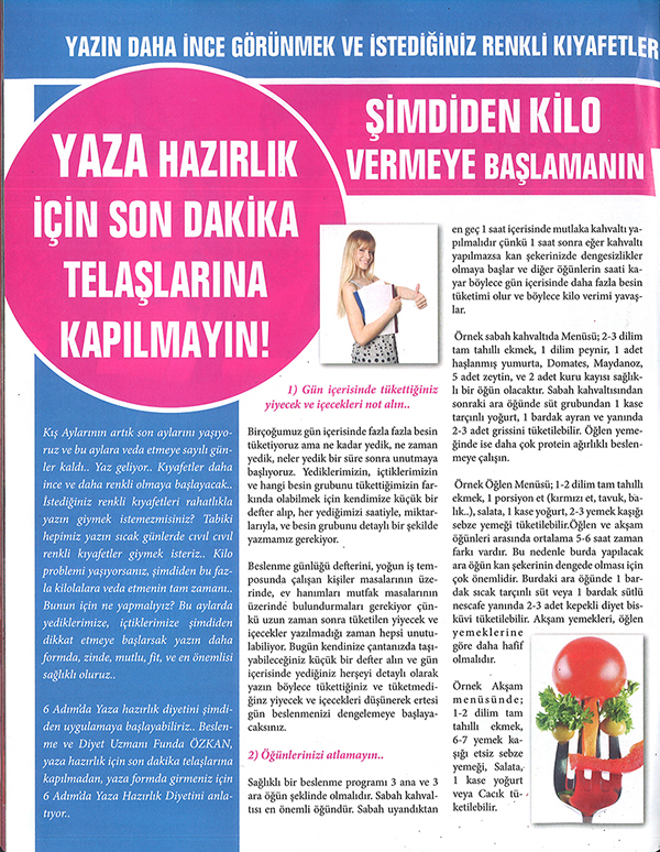 11 Şubat 2015 Şamdan PLUS Dergisinde ki "Şimdiden Kilo Vermeye Başlamanın Tam Zamanı" başlıklı yazımı kaçırmayın... |