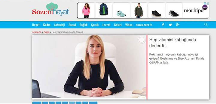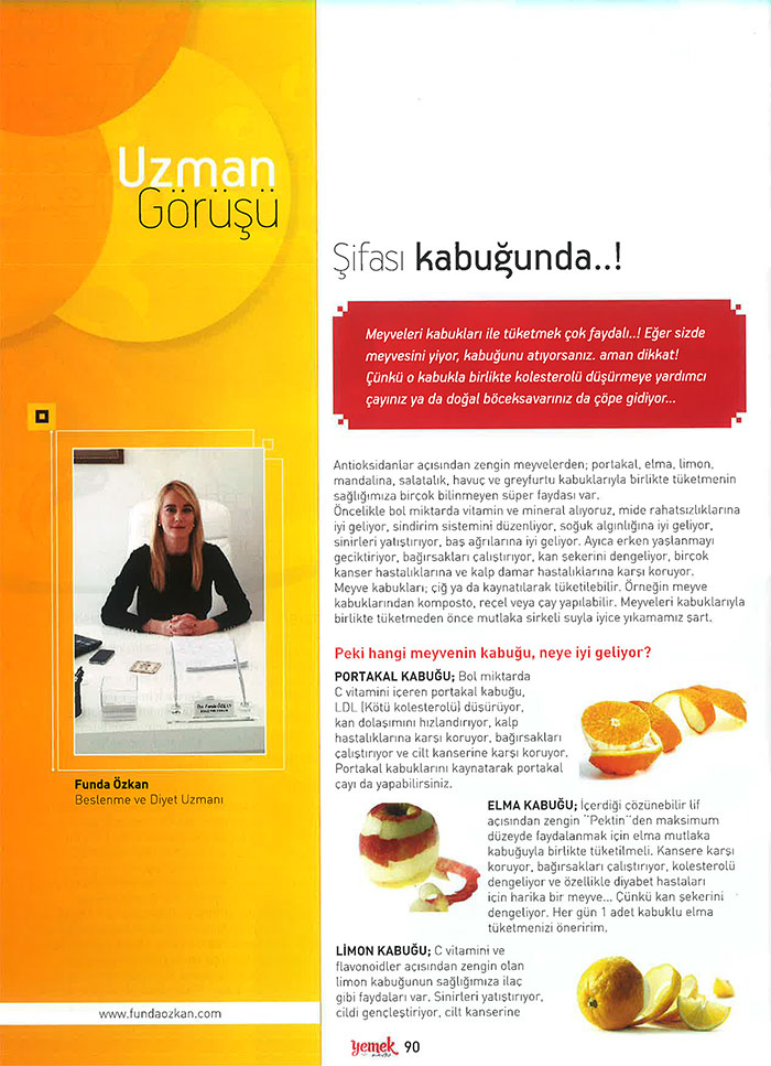 Diyetisyen Funda Özkan, bugün SÖZCÜ.COM.TR'de, "Hep Vitamini Kabuğunda Derlerdi" haberi ile ana sayfada... 17 Ekim 2014 |