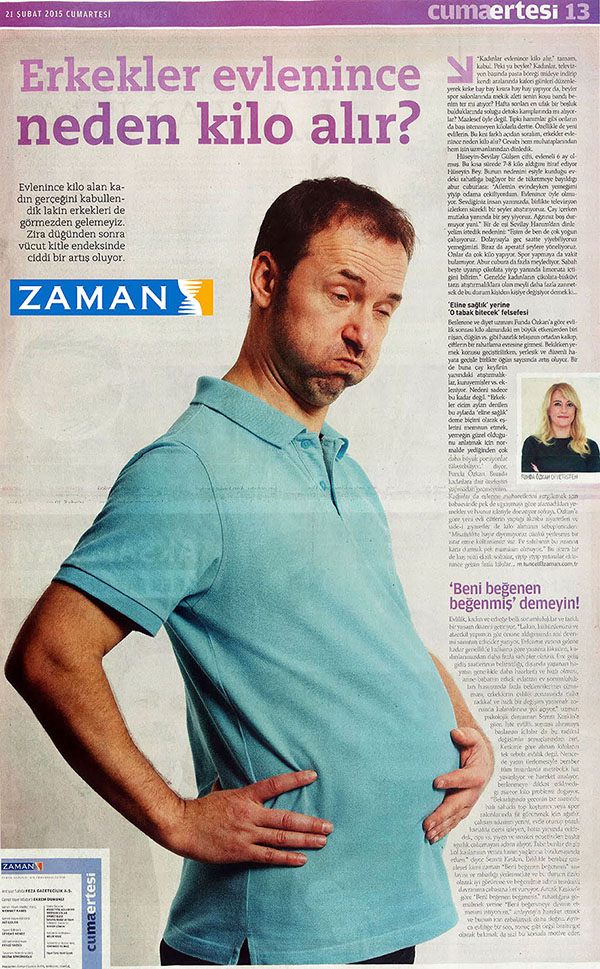 21 Şubat 2015 Cumartesi Günü ''Zaman Gazetesi'nde'' yayınlanan ''Erkekler Evlenince Neden Kilo alır?'' başlıklı yazımı mutlaka okuyun... |